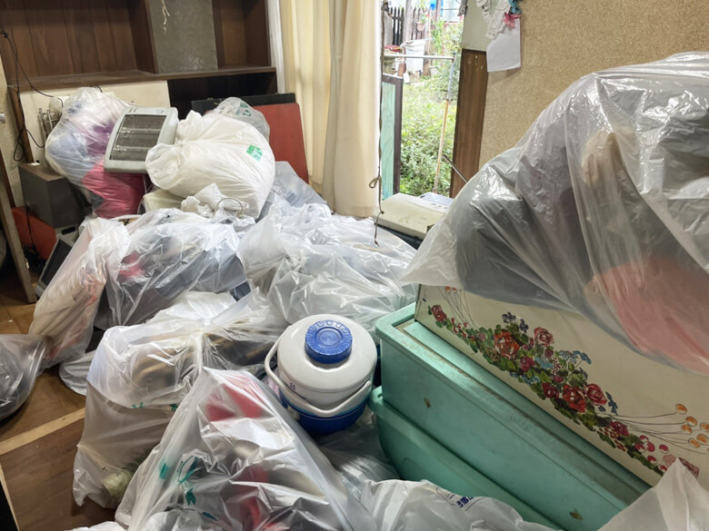 2階建てアパートの1階部分の回収でしたが、おもに雑品が入った袋の回収を行わせていただきました。
