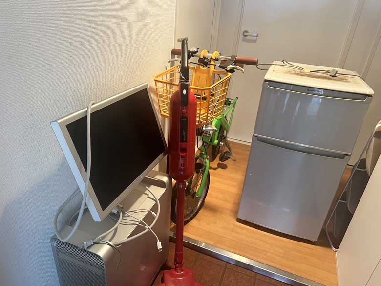 自転車、冷蔵庫、掃除機、デスクトップ、モニター