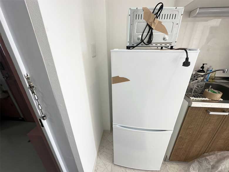 冷蔵庫、トースター、マットレス