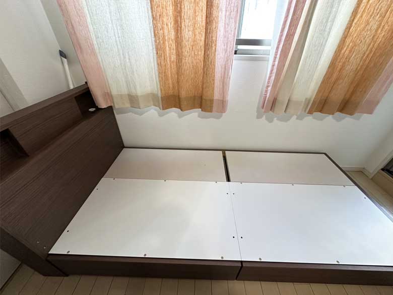 ベッドフレームは室内で解体をしてから搬出いたしました。