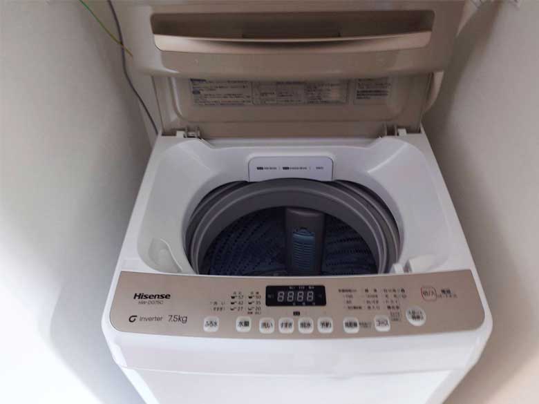 シングルベッド、シングルベッドマットレス、洗濯機、テレビ、テレビ台、ラグマット、物干し竿、布団
