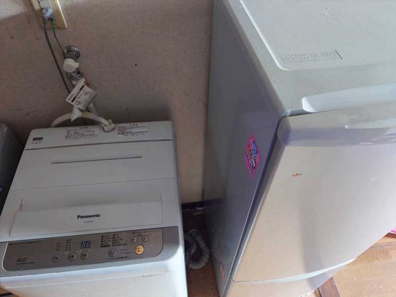 洋服タンス2、オーディオラック2、冷蔵庫、洗濯機、掃除機、ホットカーペット