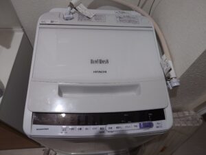 2ドア冷蔵庫、縦型洗濯機、電子レンジ、椅子、棚×2、棚、テレビ台、プリンタ