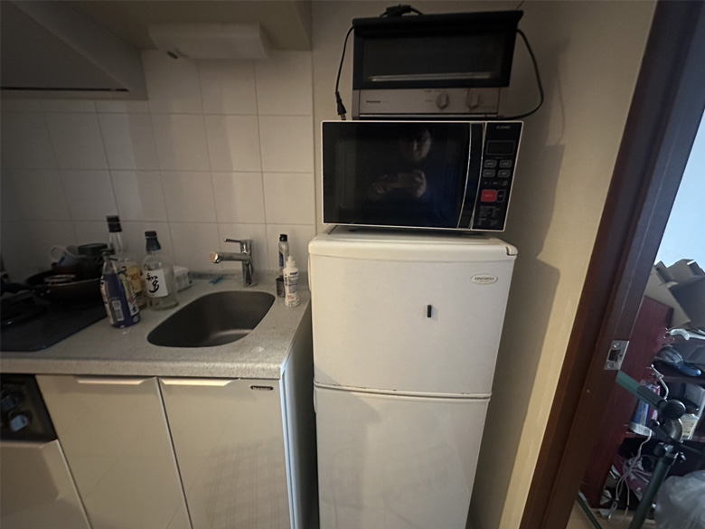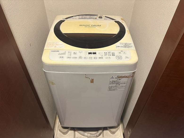冷蔵庫×1、約110リットル 洗濯機×1、電子レンジ×1、トースター×1、ベッドソファー×1、足具など無いタイプ座椅子×1