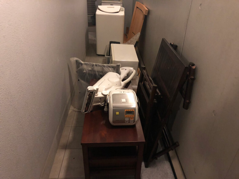 回収当日は、アパートの前にトラックを停めさせていただき、他の車両が通らないか確認しながら作業をさせて頂きました。夜間作業だったので、普段以上に静かに作業する事を意識しました。お客様にはお家の中で寛いで頂いて、作業終了後に他に回収品がないかなどの確認をして頂きました。