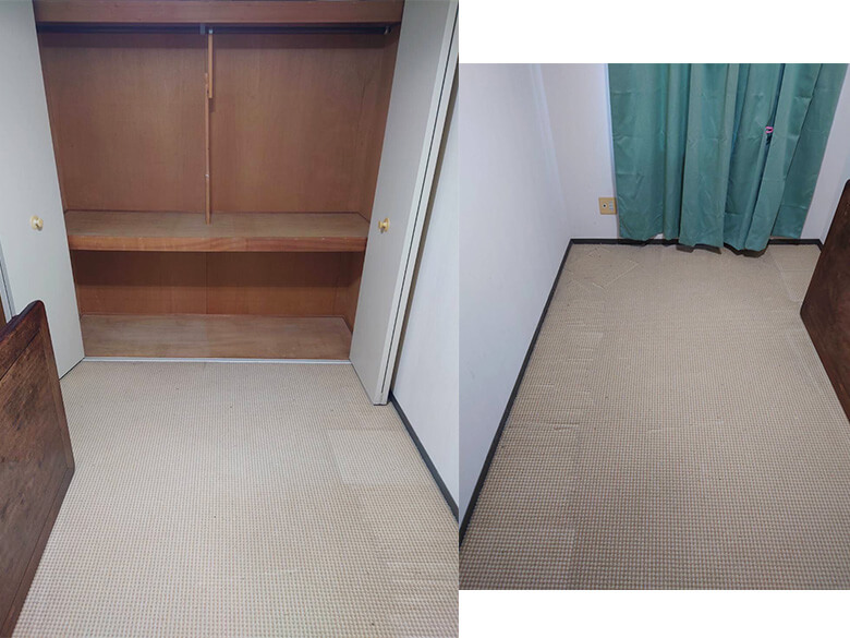 細々したものが多かったため、始めに仕分け・まとめ作業を行ないました。貴重品が混在しておりましたので慎重に仕分けを行いました。お荷物の中からキャッシュカード、通帳、勲章などが出てきましたのでお客様へ返却させて頂きました。搬出の際は、回収品がホコリを被っていたので、汚さないように玄関等の床に養生を行い運び出しました。