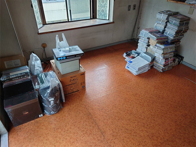 古紙類はこちらでまとめながら回収をさせて頂きました。アップライトピアノはかなり重量がありましたのでスタッフ3名で慎重に運び出しました。